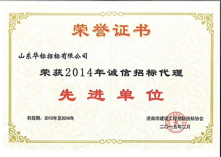 2014年誠(chéng)信招標(biāo)代理先進(jìn)單位