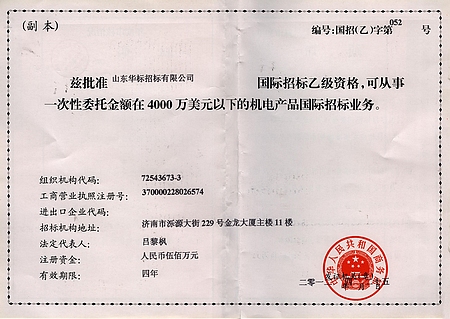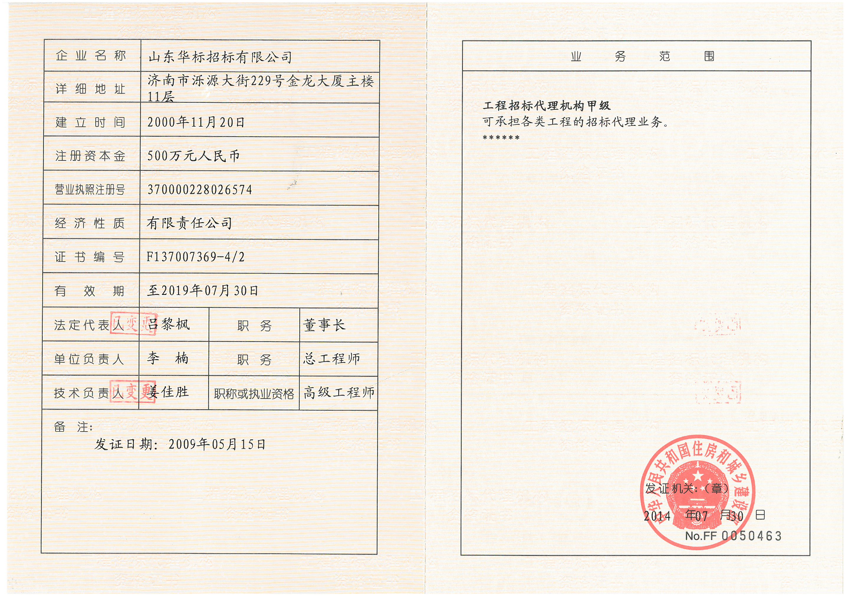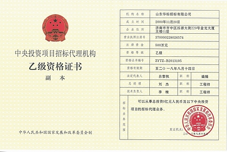中央投資項目招標(biāo)代理機(jī)構(gòu)乙級資質(zhì)